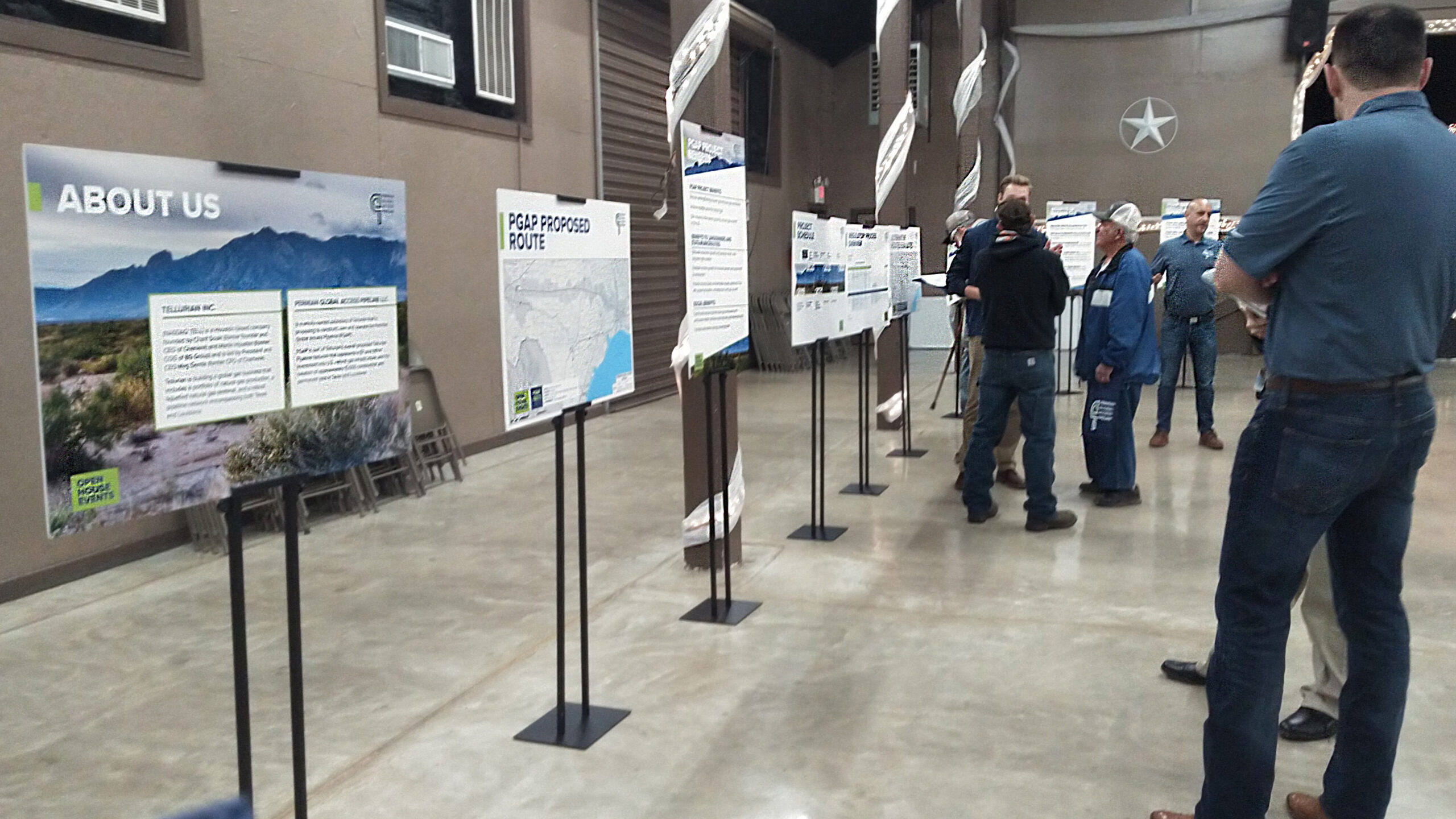 The event was hosted for all land owners within one-fourth-mile radius of the proposed route of the Permian Global Access Pipeline (PGAP). PGAG is an approximately 625-mile long, 42-inch diameter interstate pipeline of natural gas originating at the Waha Hub in the Permian shale basin near Midland, Texas and terminating into an existing pipeline infrastructure located near Lake Charles, La.