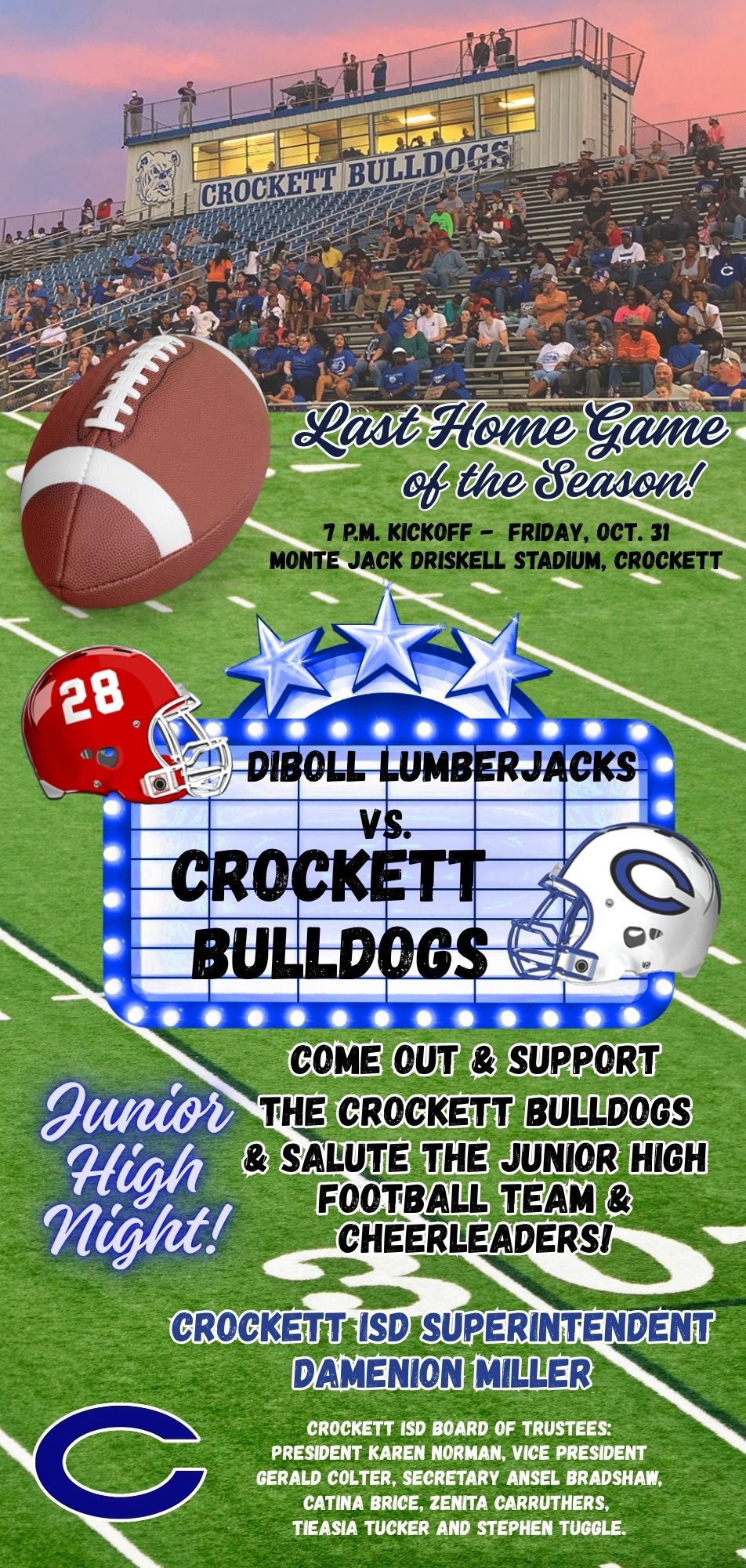 Crockett Bulldogs to Host Last Home Game Oct. 31 at Monte Jack Driskell Stadium