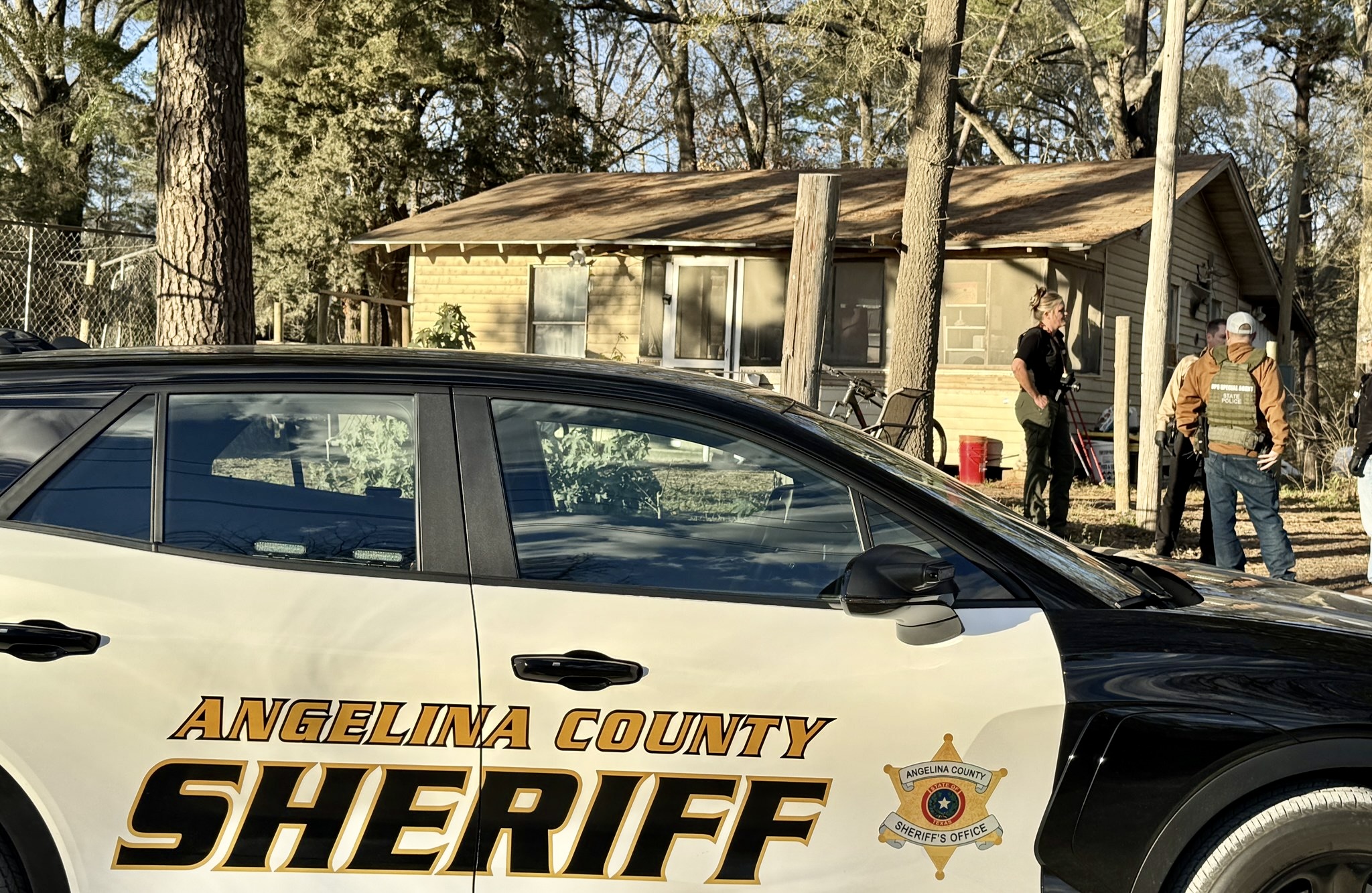 The investigation involved the Angelina County Sheriff’s Office, Houston County Sheriff’s Office, Lufkin Police Department, the Angelina County District Attorney’s Office, Texas Department of Public Safety Criminal Investigations Division, the FBI Safe Streets Task Force, Homeland Security, the Bureau of Alcohol, Tobacco, Firearms and Explosives, and the Drug Enforcement Administration. A hazardous materials disposal unit was also dispatched to secure and safely handle evidence recovered at the scene.